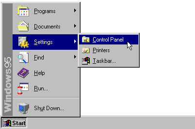 1 Click on the Start button. Go to Settings and then click on Control Panel. |